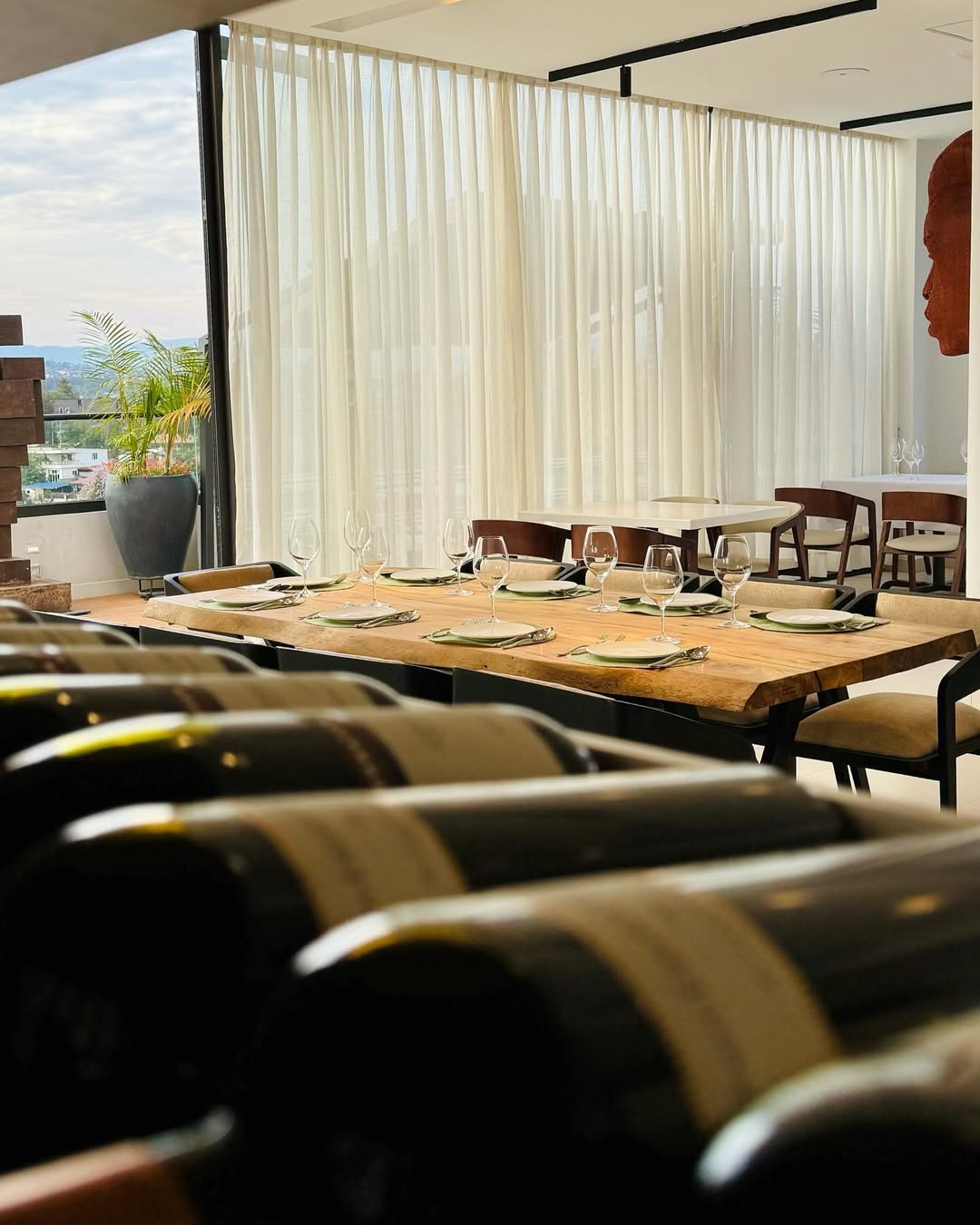 Lilly fine dining is located on the top floor of one of the tallest buildings in Kigali's popular Kimihurura neighborhood, the restaurant offers breathtaking views of the city. Guests can enjoy the stunning panorama not only from the rooftop terrace but also from inside, thanks to the large window frontage. The carefully curated 8-course dinners will take you on a culinary journey and delight your tastebuds with dishes from Rwanda and beyond. Guests are surrounded by art pieces from local artists displaying Rwandan culture in a modern creative way.